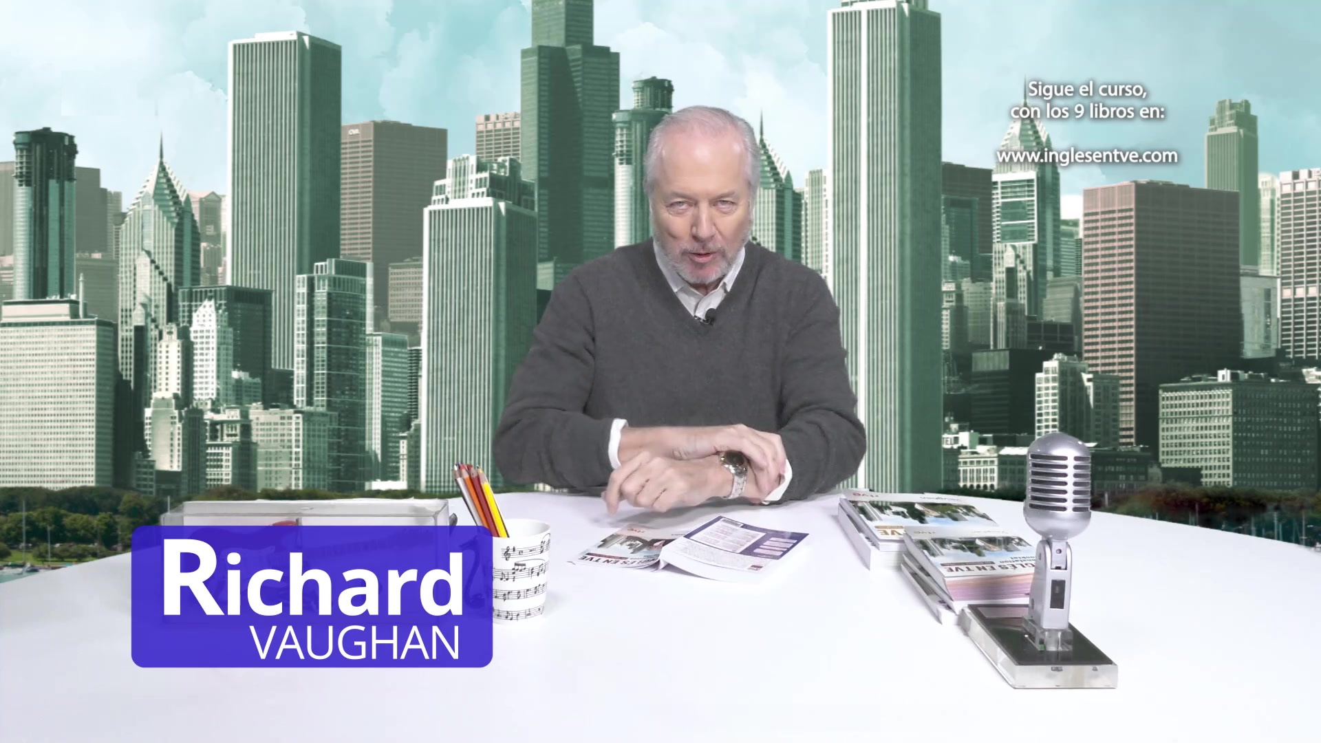 Richard Vaughan da clases de 26 minutos de inglés siguiendo el manual del estudiante creado en Vaughan.