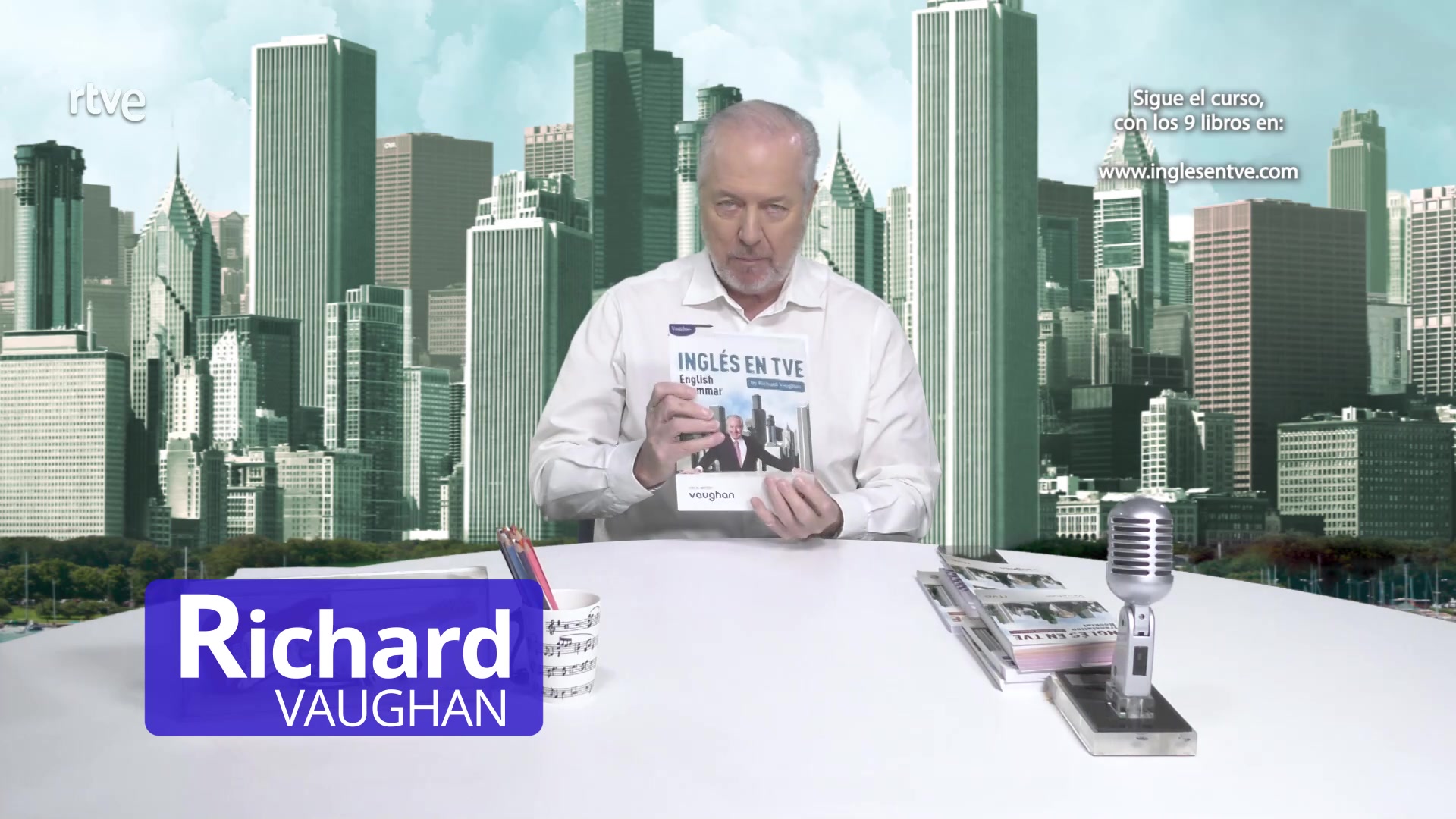 Richard Vaughan da clases de 26 minutos de inglés siguiendo el manual del estudiante creado en Vaughan.