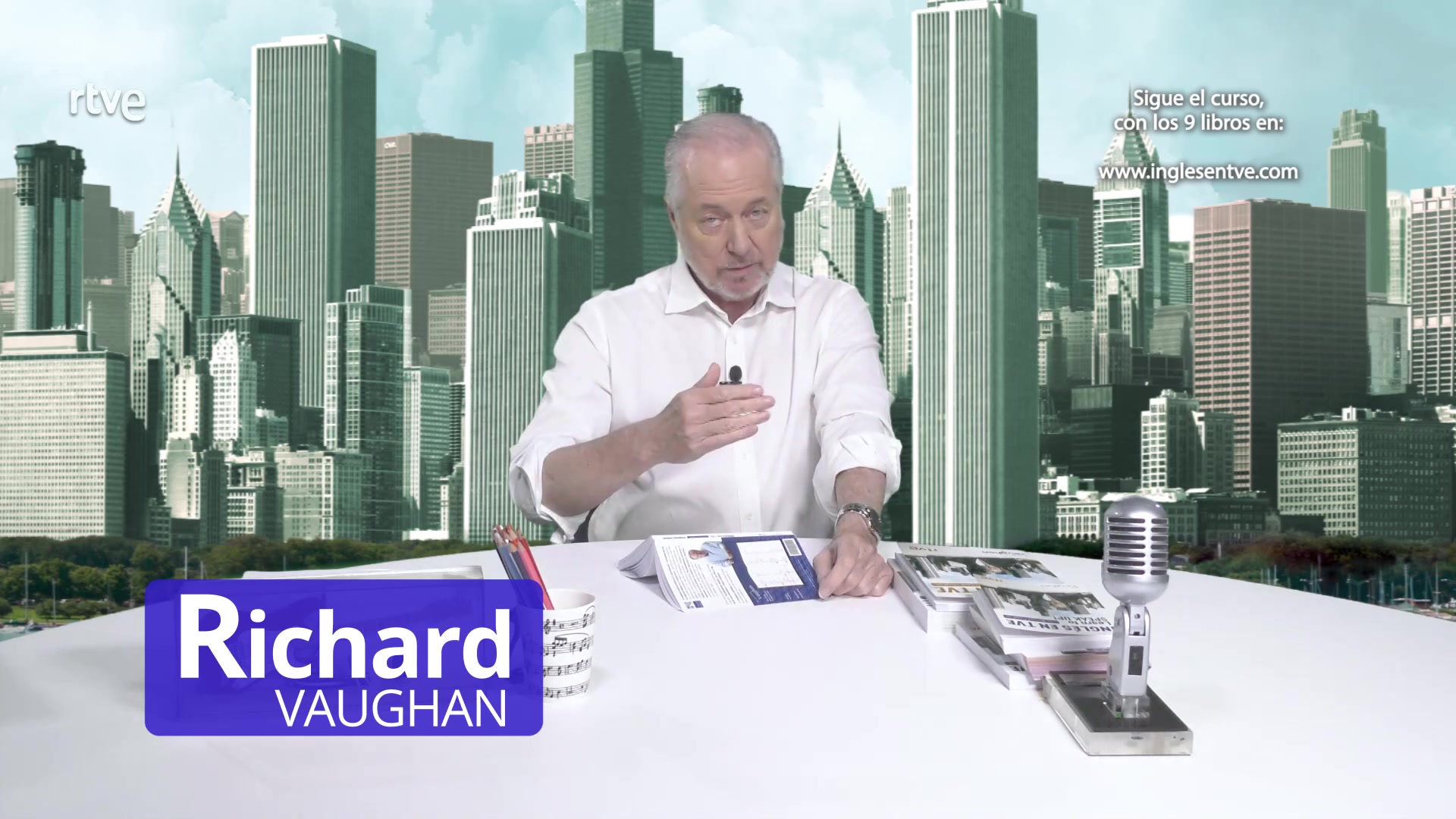 Richard Vaughan da clases de 26 minutos de inglés siguiendo el manual del estudiante creado en Vaughan.