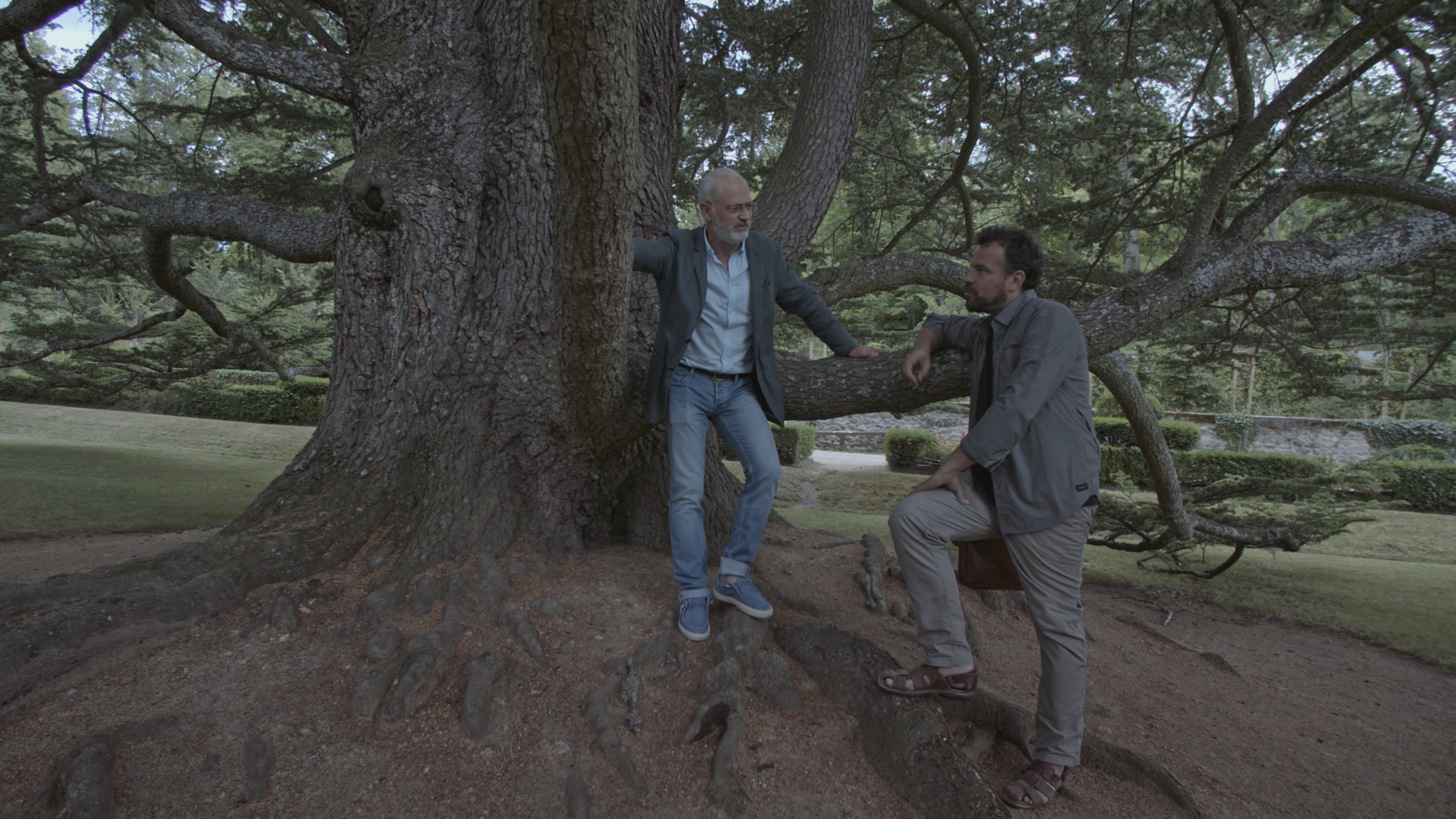 El arquitecto Arturo Franco y Nilo Fernández, delegado de Patrimonio Nacional, pasean por los jardines de La Granja de San Ildefonso admirando un...
