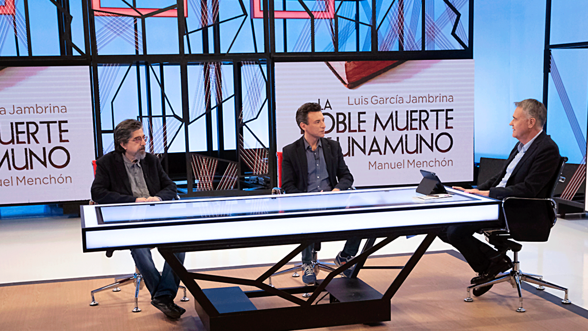 Con al escritor Luis García Jambrina y al director de cine Manuel Menchón, que acaban de publicar el libro 'La doble muerte de Unamuno'.