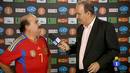 Un periodista entrevista a Fernández, promesa del fútbol base.