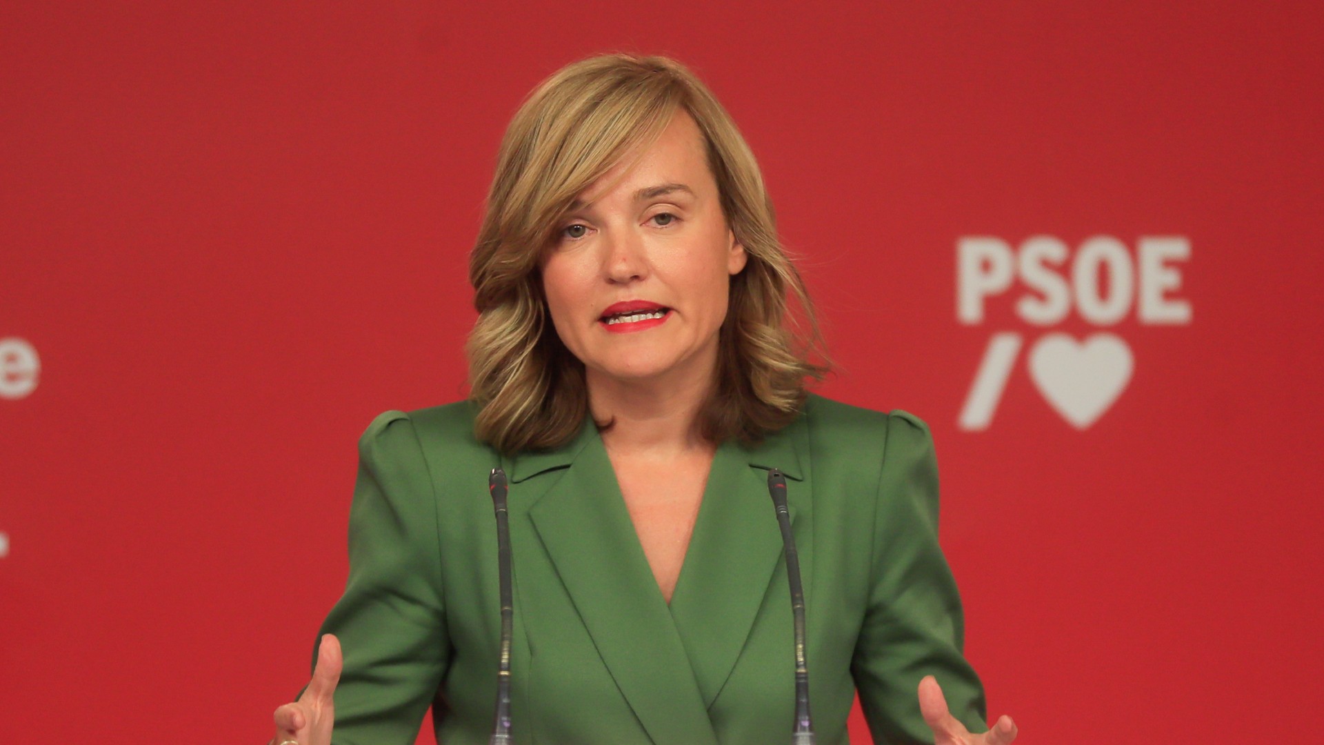 FOTO: Pilar Alegría, durante una rueda de prensa en la sede del PSOE. EFE/ Fernando Alvarado