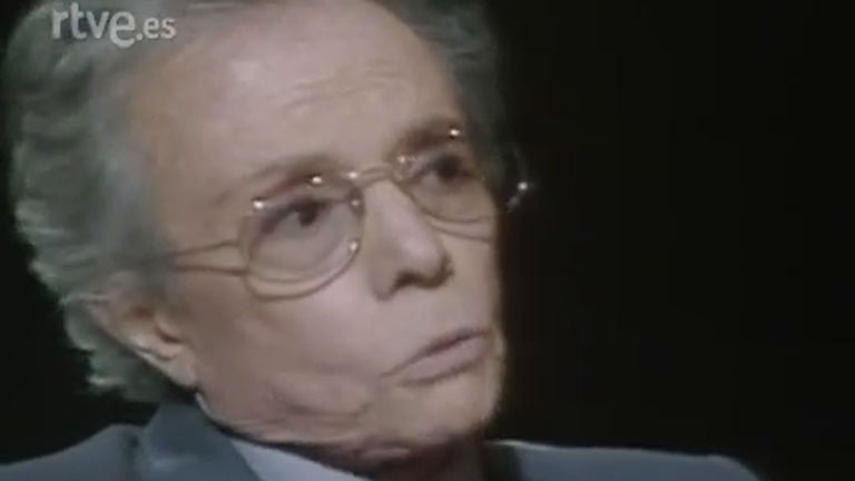 Julia Otero entrevista al célebre modisto Manuel Pertegaz en un programa que cuenta con la actuación musical de Paloma San Basilio.