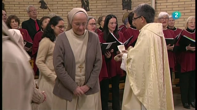 Des de la capella del Col·legi Pureza de María de Sant Cugat del Vallès, presideix la celebració Mn. Carles Cahuana.