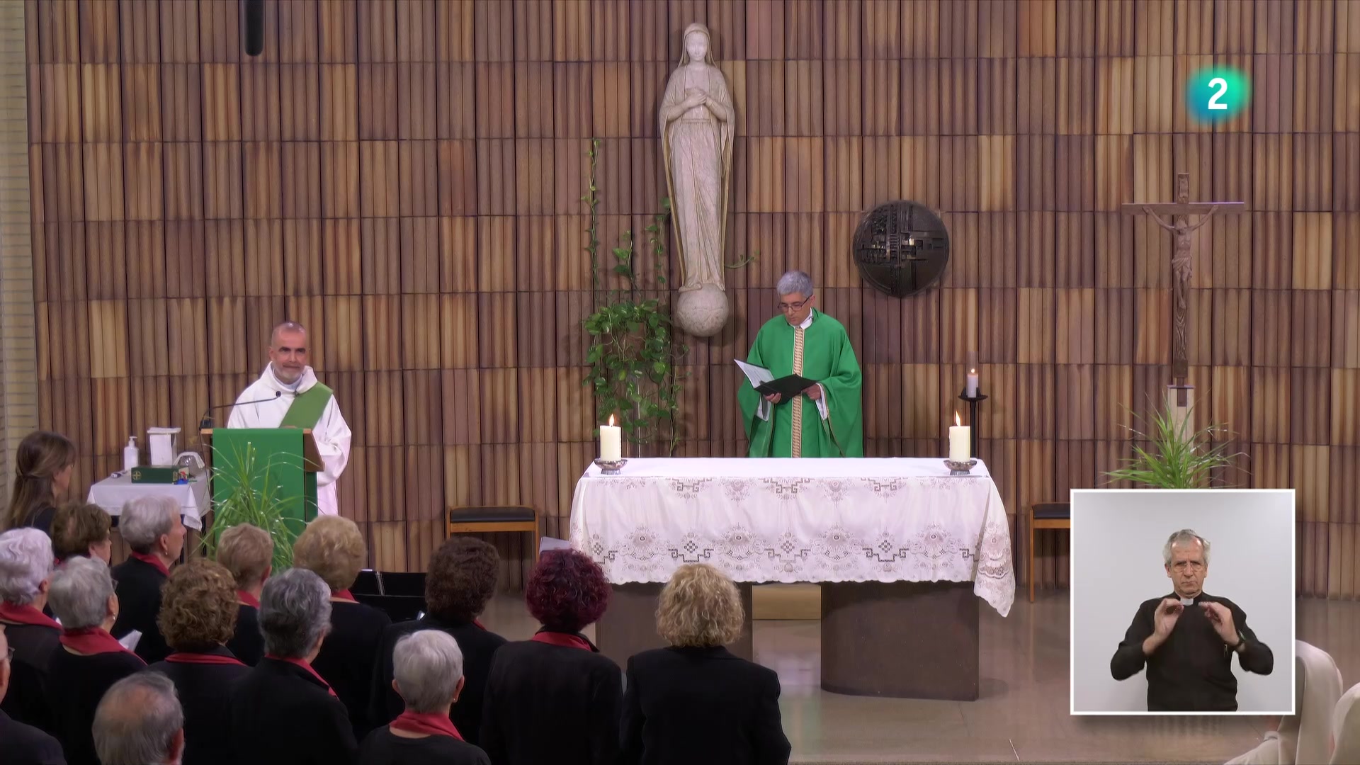 Presideix la celebració Mn. Carles Cahuana i assisteix com a diaca Mn. Ignasi Miranda. Amb la coral Amics Cantors de Marçà.