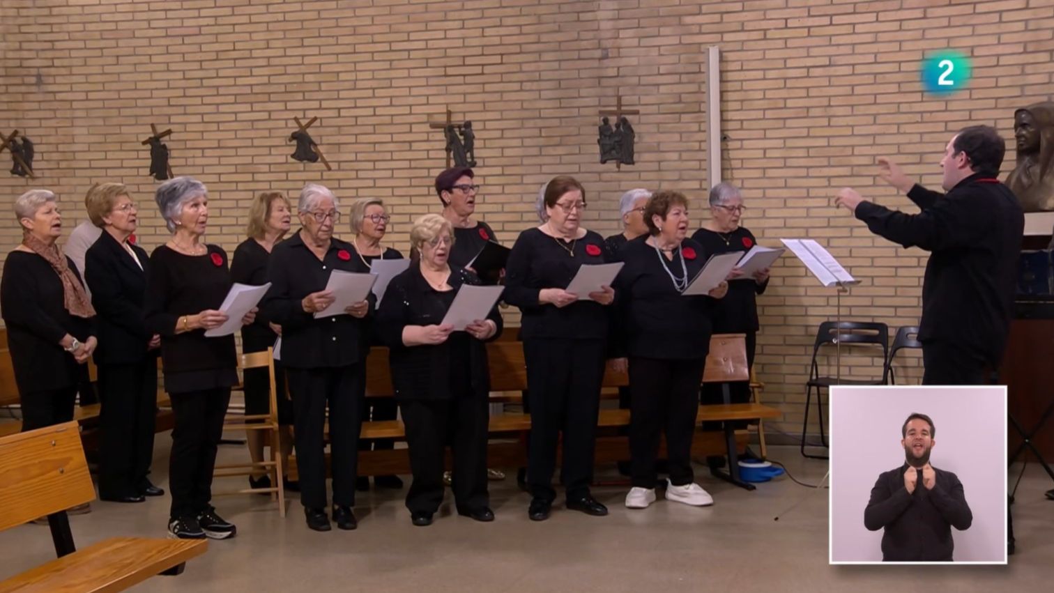 Des del Col·legi Pureza de María, amb Mn. Carles Cahuana i Mn. Ignasi Miranda. Coral Can Blat, de Sant Hilari Sacalm, dirigida per Gil Jumbert.