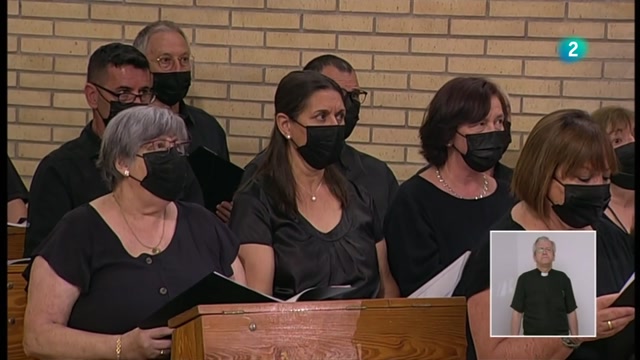 Presideix Mn. Carles Cahuana al Col·legi Pureza de María de Sant Cugat. Amb la Coral Santa Eulàlia de Ronçana dirigida per Andreu Brunat.