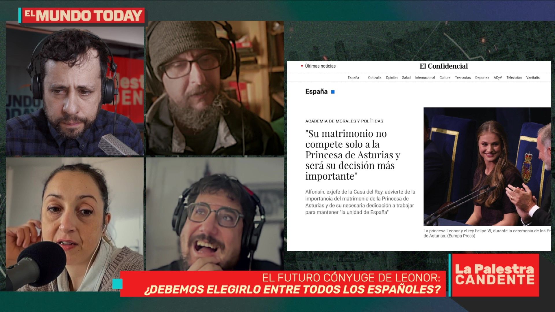 Algo terrible está a punto de ocurrir: el IBEX está en máximos históricos, pero que España lidere el crecimiento económico de la Unión Europea no puede ser signo de nada bueno. ¿Estamos preparados para soportar esa presión? En este episodio de La Palestra Candente, Kike García, Biel Perelló, Irene Minovas y el precoz analista Tomàs Fuentes debaten sobre economía, monos, las reformas de la Casa Blanca, la descarbonización de los aviones y el futuro cónyuge de Leonor. ¿Debemos escogerlo entre todos los españoles? Es más, ¿deberíamos ponernos "presentables" (ducha, peinado, buena ropa) todos los ciudadanos mientras la princesa esté “en el mercado”?