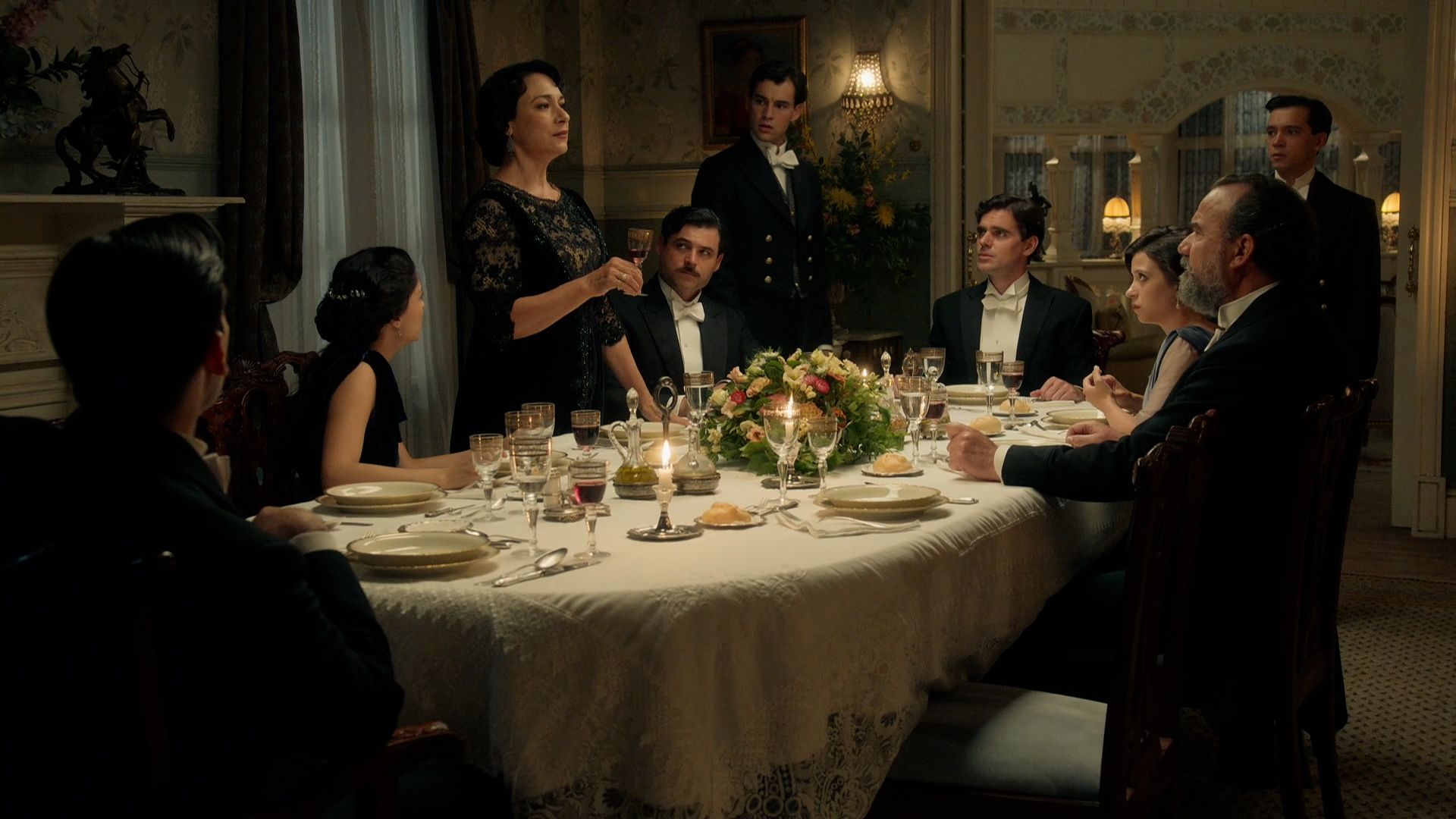 Una inocente Ángela le recuerda a su madre que eso ya lo hace ella, y de una forma excelente, pero Leocadia no había terminado de hablar: "Me hubiera gustado que estuviera toda la familia presente, pero no quiero dilatar más el momento de anunciaros la decisión que he tomado. He visto claro que la seguridad que necesita mi hija Ángela para que no vuelva a ocurrirle algo así solamente la va a conseguir contrayendo matrimonio. Tengo el inmenso placer de anunciar el compromiso matrimonial entre mi hija Ángela y el capitán Lorenzo de la Mata", dice la mujer ante la mirada horrorizada de la joven, y las caras de incredulidad de Curro y toda la familia Luján. Solo Lorenzo ha sonreído ante la noticia.