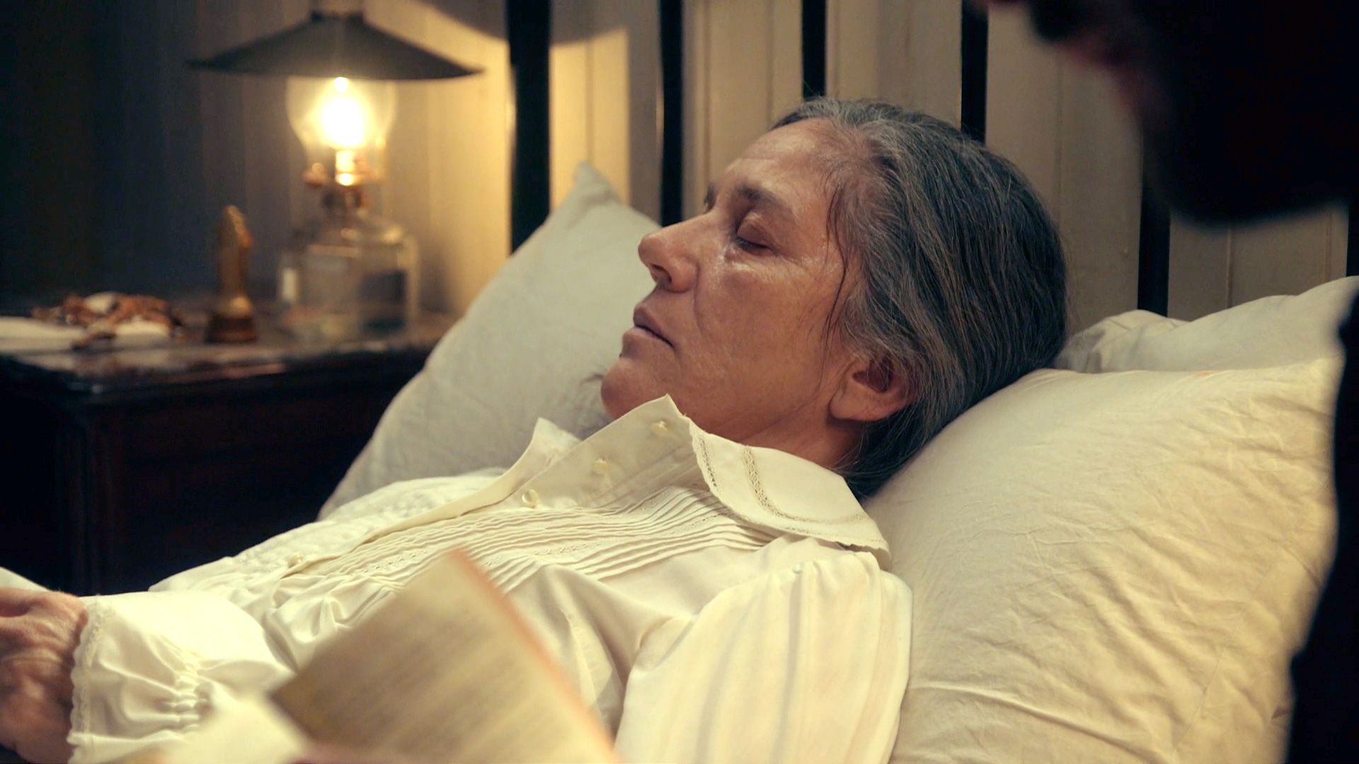 Aunque había hecho un amago de despertar, finalmente, el ama de llaves, recupera su vitalidad mientras Samuel lee la resurrección de Lázaro en la...