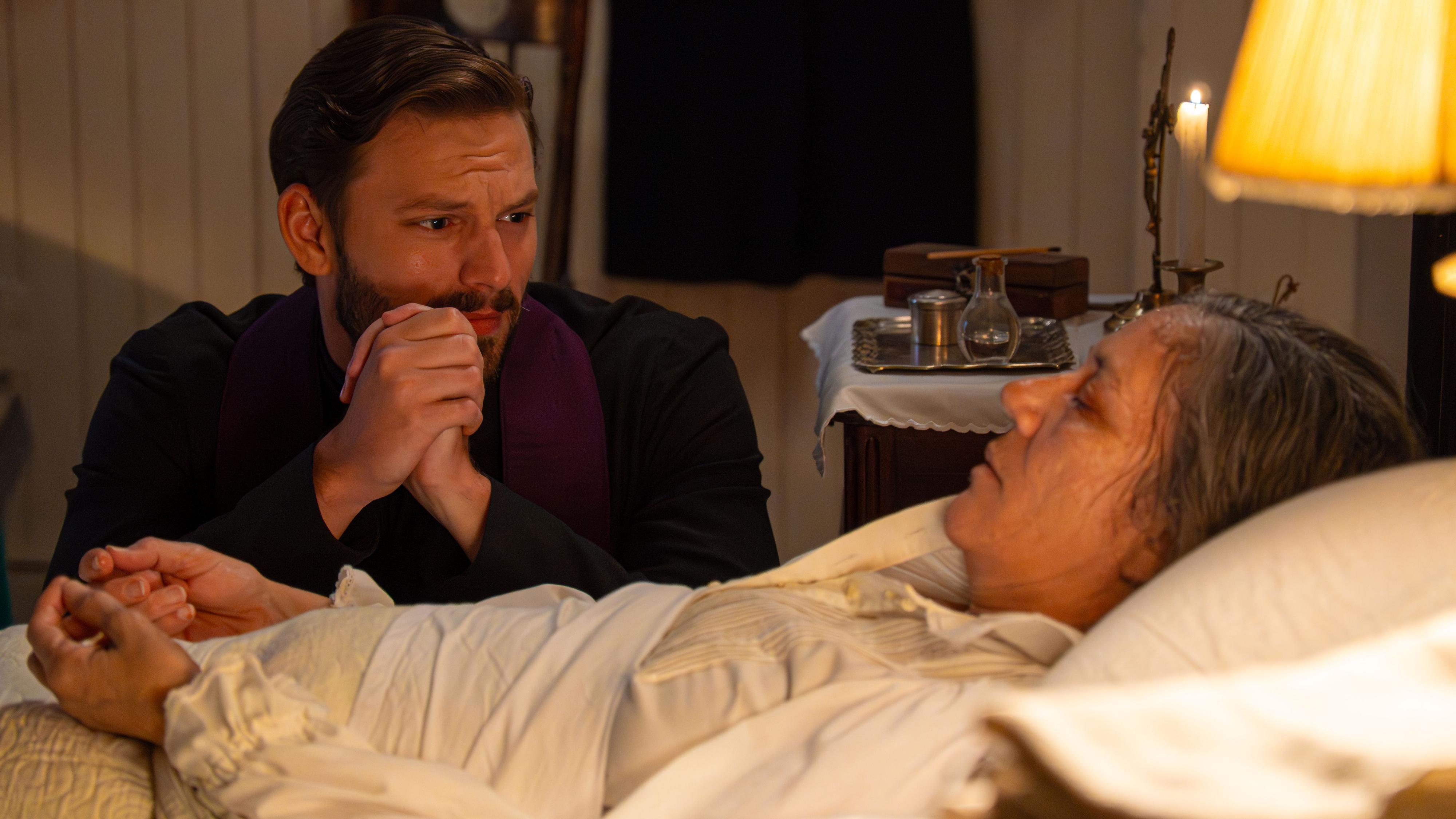 Aunque se le ha administrado el suero antitetánico, el padre Samuel unge a Petra con el óleo de los enfermos por si fuera necesario.