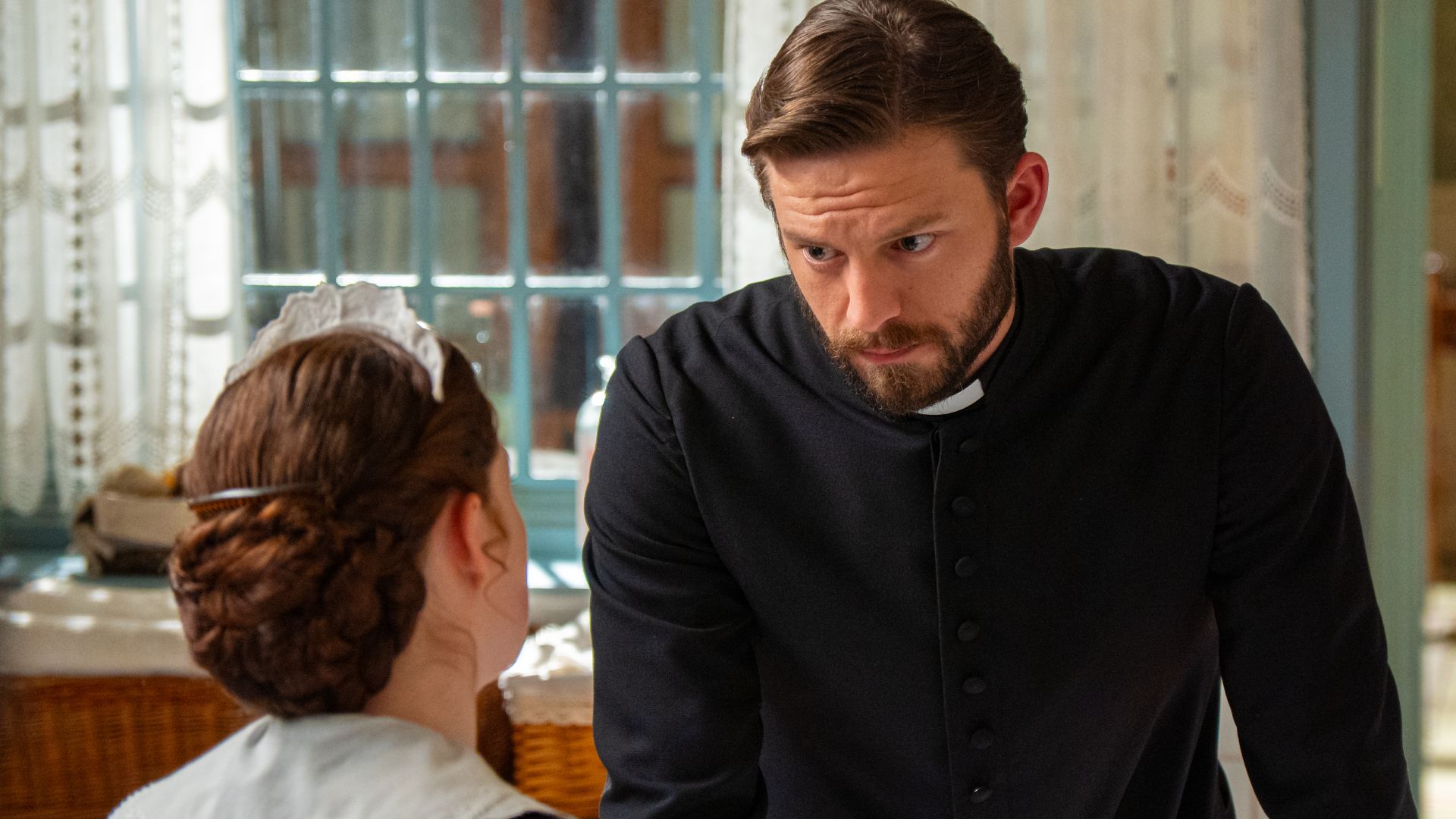 Teresa le cuenta a Petra y Rómulo el ataque de Eugenia al capitán de la Mata y se preocupan. María Fernández nota que la hermana de Cruz parece confundida, pero Leocadia la invita a dar un paseo por el pueblo. María Fernández sigue preocupada por Samuel y le dice que está convencida de que fue Petra quien le delató ante el obispado. Rómulo besa a Emilia, pero esta sale huyendo, mientras Vera le dice a Lope que la esmeralda que le regaló es falsa. Adriano escucha a Petra y a las cocineras hablando de él a sus espaldas y tiene un enfrentamiento con Lisandro. Curro le dice a Pía que ya sabe quién mató a su hermana. El sargento Burdina informa a Manuel de que ha investigado lo que le dijo Toño y ha descubierto que todo es mentira.
