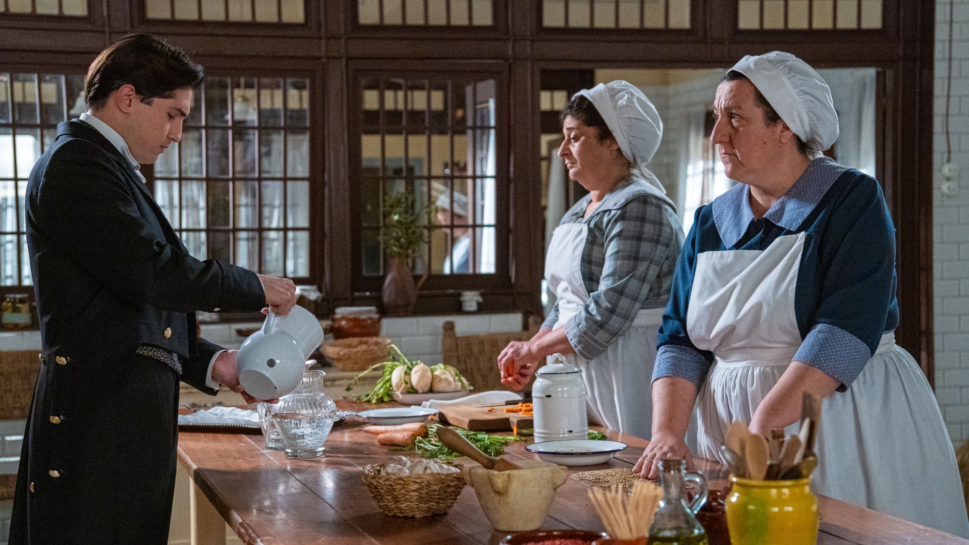Cruz no se lo pone fácil a Catalina y hace lo imposible para humillar a Adriano durante la cena. Virtudes teme que la idea de sus compañeros de hacer nuevas mermeladas para recaudar dinero les traiga problemas con los señores. Margarita acusa a Rómulo por la invitación no deseada de la duquesa de Carril y el mayordomo jefe pedirá responsabilidades a Ricardo, Petra y Santos. Manuel echa de menos a Jana y pide a Salvador que le ayude a cubrir la ausencia de Curro, que ha rescatado a Martina del sanatorio. Vera reconoce ante Santos el encuentro con su madre y deniega la posible ayuda que el lacayo pueda ofrecerle, sin sospechar que él está detrás de todo. Los marqueses reciben una llamada inesperada del sanatorio donde estaba Martina.