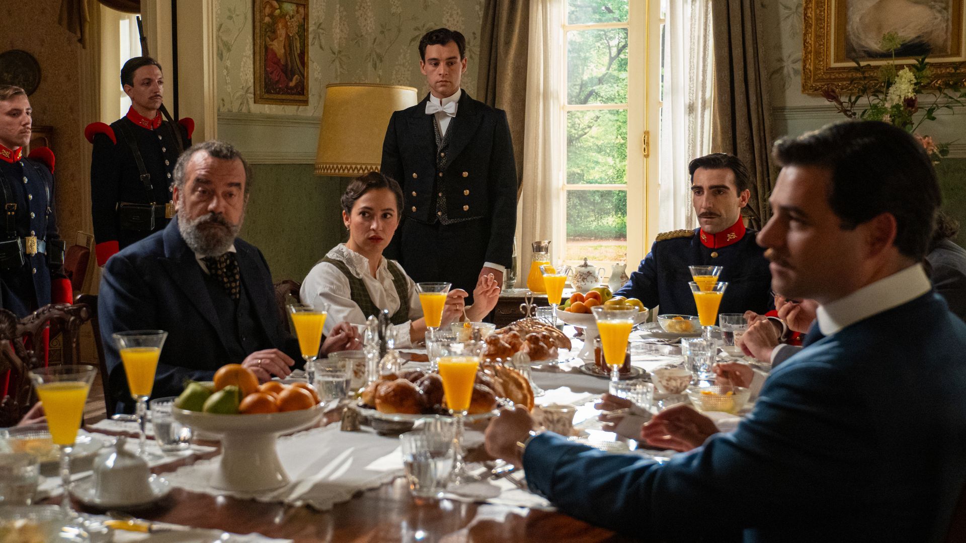 13/08/2025 00:57:14Manuel lidia con la incertidumbre sobre su empresa y la ambigüedad de Leocadia, mientras observa con cierto recelo la felicidad de Toño y Enora. María Fernández se entera de que hay algo romántico entre ellos y comenta preocupada con sus compañeras que Toño es un hombre casado. Vera y Lope trazan un arriesgado plan para contactar con el hermano de ella y deciden enviarle una carta. Samuel vuelve a generar división entre los criados y Cristóbal, pero Toño y Petra defienden su valía con firmeza hasta el punto de que Toño le pide al mayordomo que le acompañe al refugio. Adriano y Alonso estrechan lazos tras compartir su preocupación por Catalina, que sigue enrocada en su postura. Martina recibe al barón de Valladares, que asegura que quiere hablar con ella del conflicto. Curro delata a Lorenzo ante el coronel Fuentes, desatando una cadena de acontecimientos que culmina con la detención del capitán ante la atónita mirada de la familia.