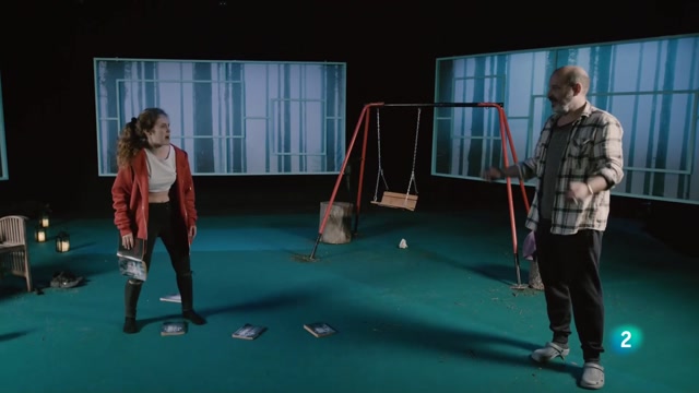 Fragment de l'obra 'Sandra'. Autora i directora: Daniela Feixas Actors: Elena Tarrats i Josep Julien. Un escriptor d’èxit, que porta una vida voluntàriament solitària, rep l’estranya visita d’una nena que capgirarà la seva vida de dalt a baix. La Nena busca un lloc on dormir i refugiar-se. És evident que fuig d’alguna cosa o d’algú. Malgrat la resistència inicial, l’home, fascinat per aquesta criatura misteriosa que sembla sortida d’una de les seves novel·les policíaques, acaba cedint i deixant-la quedar. Una nit la Nena apareix visiblement trasbalsada i confessa a l’Home que creu que ha matat algú.