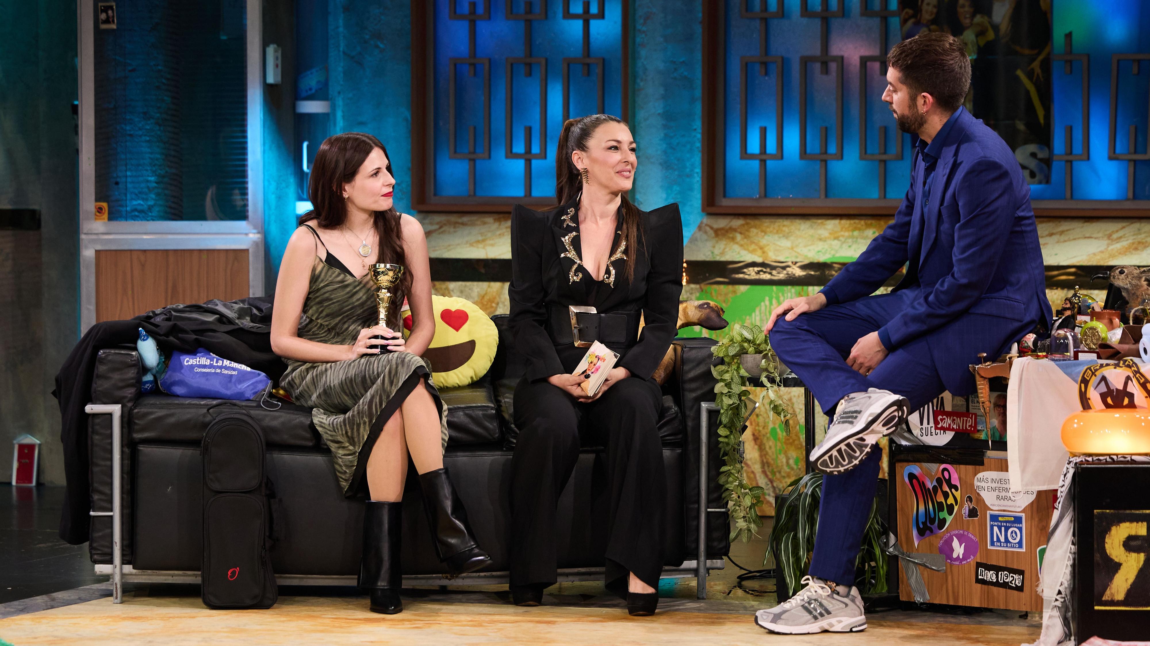 La cantante Mara Barros, corista y voz femenina de Joaquín Sabina, comenta en La Revuelta la jubilación del artista de Úbeda acompañando a Noah Higón
