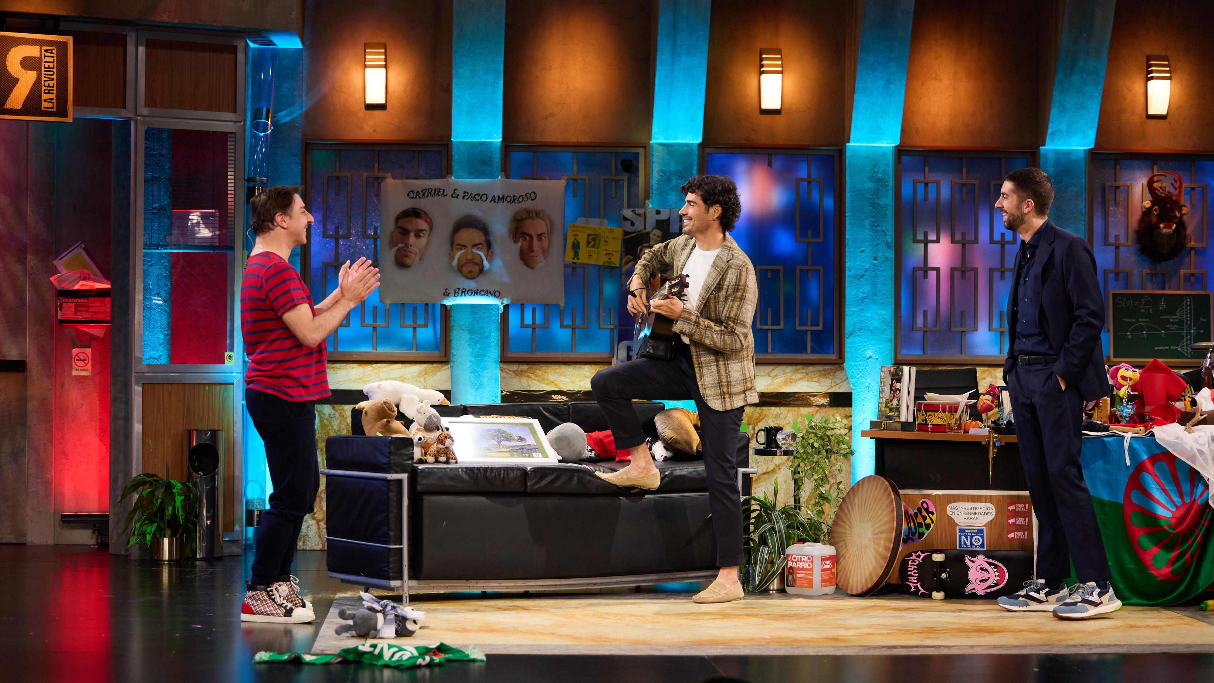 David Broncano entrevista al repostero Jordi Roca y el guitarrista Pablo Sainz-Villegas pone el cierre musical a La Revuelta tocando en vivo.