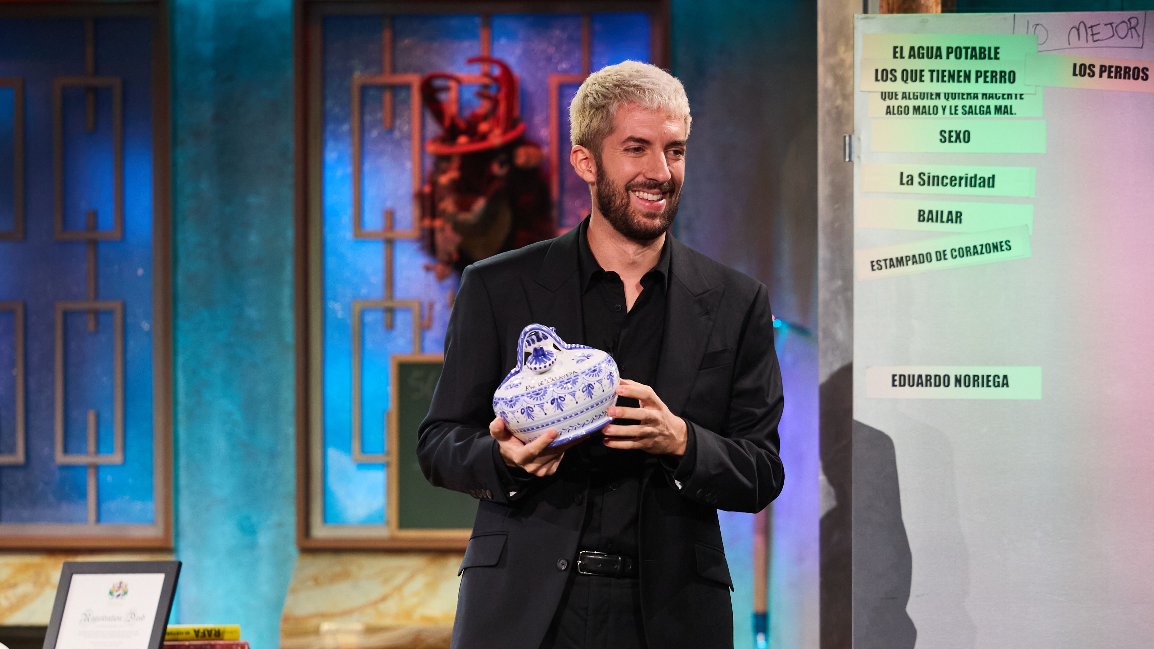 Un espectador de La Revuelta entrega a David Broncano un regalo personal para el actor Antonio Resines, padrino del programa