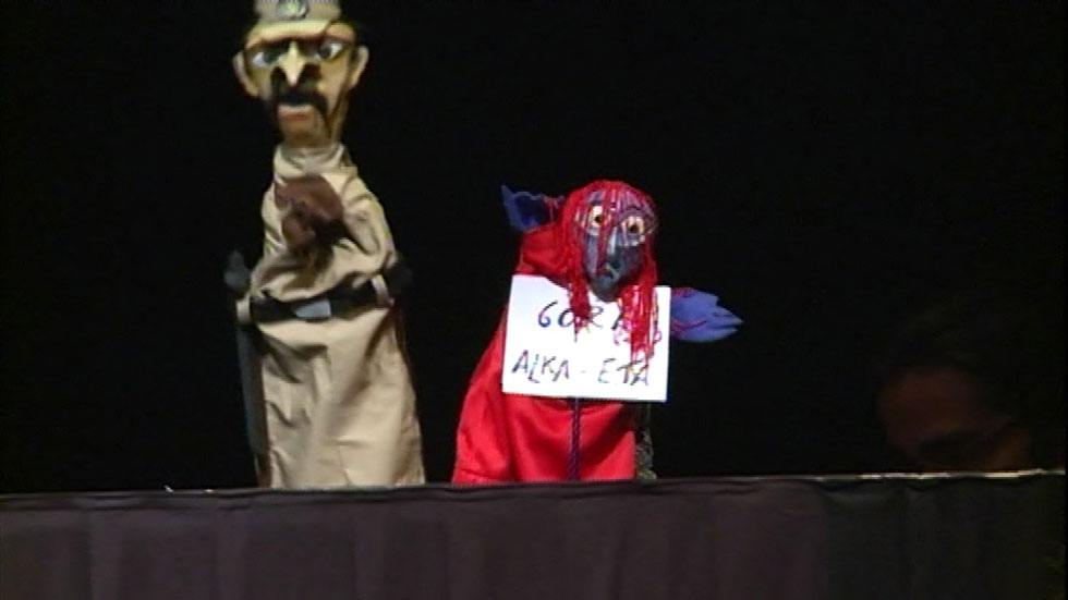 Los actores Alberto San Juan y Gloria Muñoz han vuelto a representar este jueves en Madrid parte de la obra de los titiriteros investigados por enaltecimiento del terrorismo, en un acto en su homenaje en el que uno de los guiñoles ha exhibido de nuevo el polémico cartel con el lema "Gora Alka-ETA" para incriminar a otro de los muñecos. Artistas, periodistas, escritores, sindicalistas, abogados y activistas pro derechos humanos, convocados por la revista Contexto (ctxt) y el diario Público en el Teatro del Barrio, han reclamado el archivo inmediato de la causa que se sigue contra los dos titiriteros, Alfonso Lázaro de la Fuente y Raúl García.