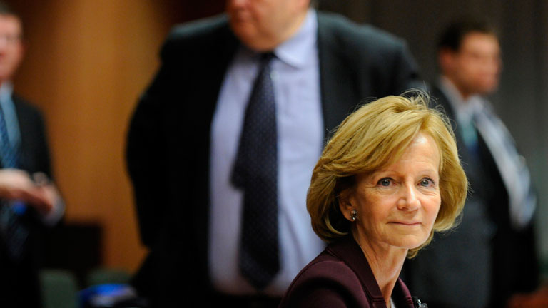 Elena Salgado, se ha despedido en Bruselas en la que ha sido su última comparecencia como ministra de Economía ya en funciones,tras las elecciones...