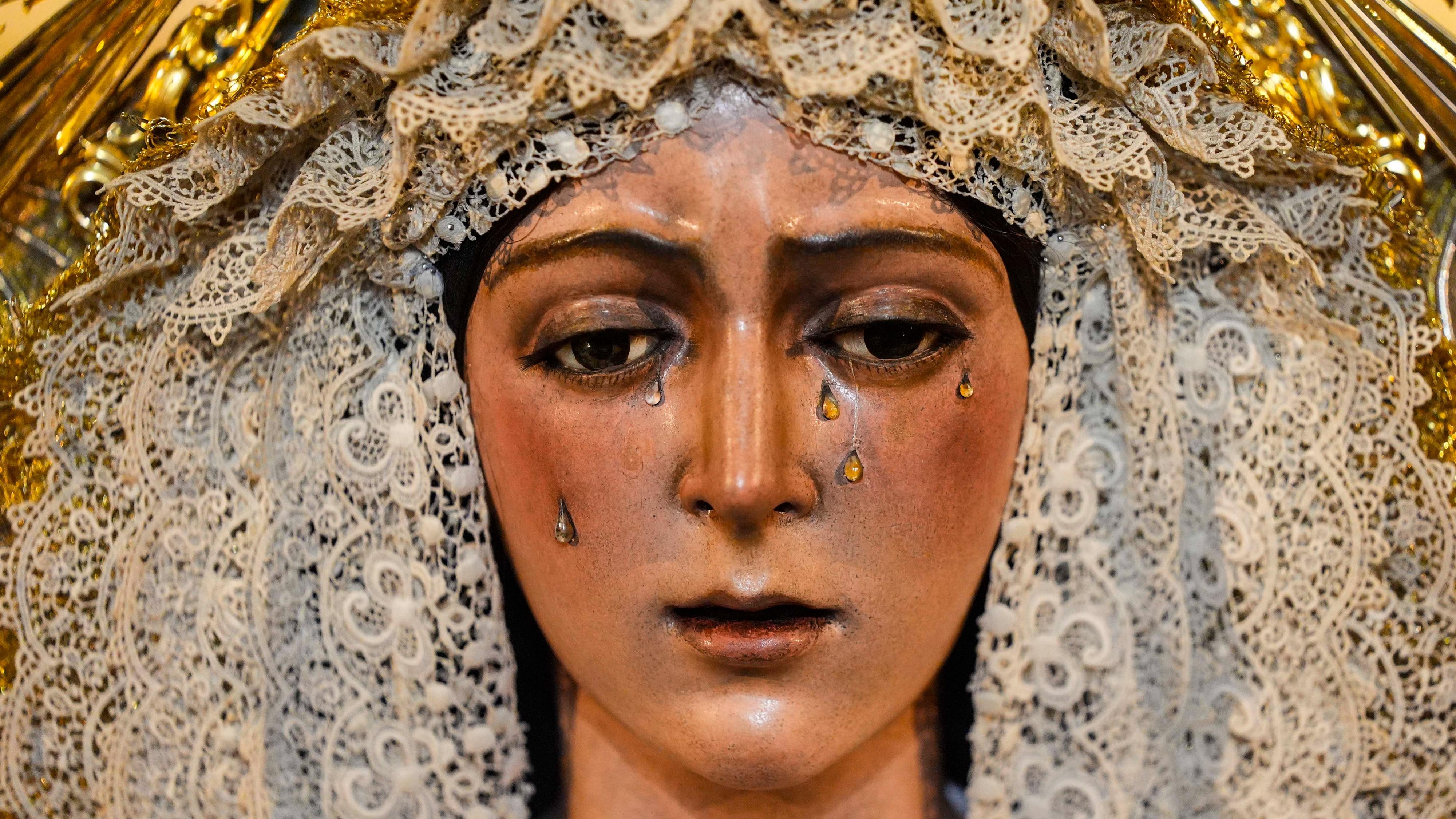 23/06/2025 00:05:20El escultor y profesor de la Facultad de Bellas Artes de la Universidad de Sevilla, Rafael Martín Hernández, explica que en un principio "el problema estaba en las pestañas". Por ello, se optó por recortarlas y en la madrugada del domingo se patinó la imagen.