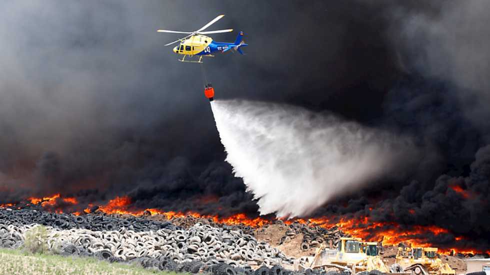 Los servicios de emergencia aseguran que no hay riesgo para la población, aunque se han suspendido las clases y se ha pedido a los vecinos que no salgan de sus casas. Casi 16 horas lleva ardiendo el vertedero de neumáticos de Seseña, el más grande de Europa. El fuego comenzaba pasada la una de la madrugada y pronto levantó inmensas llamas y una densa columna de humo. El vertedero, que se encuentra entre Madrid y Toledo, fue declarado ilegal en 2003 contiene unas 77 mil toneladas de neumáticos.