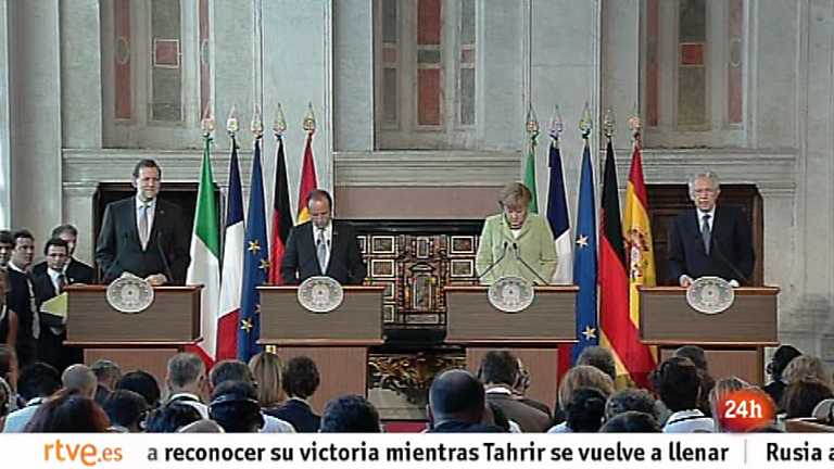 Alemania, Francia, Italia y España, han acordado presentar en la cumbre europea del 28 y 29 de junio un plan de crecimiento económico por valor del 1 por ciento del PIB de la Unión Europea, unos 130.000 millones de euros. Lo ha anunciado en Roma el primer ministro italiano.