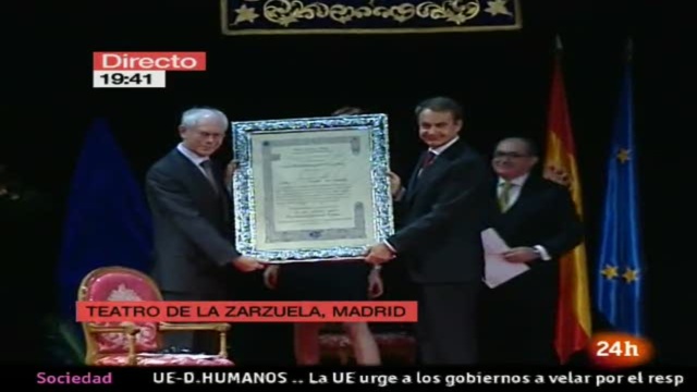 Zapatero, entrega el premio Nueva Economía Fórum a Herman Van Rompuy.