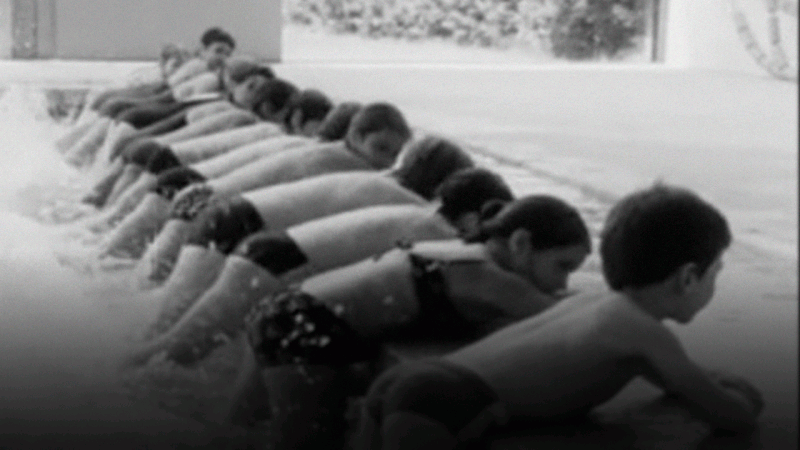 Programa divulgativo que trata sobre el deporte de la natación, emitido en TVE en 1975