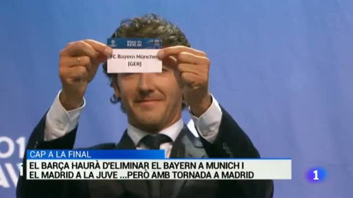 El Barça s'enfrontarà el 6 de maig al Bayern de Muních a les semifinals de la lliga de Campions. El duel decisiu, la tornada a Alemanya, el podreu veure en directe per La 1 el 12 de maig. L'altra semifinal serà, a priori, molt més plàcida per al Reial Madrid que visitarà a la Juventus el 5 de maig, un partit que també oferirà Televisió Espanyola. La tornada serà el dia 13 al Bernabeu.