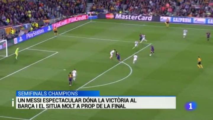 El Barça ha posat la directa cap a la final de la Champions de Berlín i anit va guanyar 3 a zero al Bayer de Munich. Dos golassos d'un Messi estel·lar van animar els últims 20 minuts d'un partit en el que els blaugrana van ser superiors als alemanys. Neymar va tancar el marcador i deixa molt encarrilada la classificació pendent encara del partit de tornada de dimarts vinent que podreu veure a La 1 de Televisió Espanyola. Una victoria que deixa tocat a un referent culé com és Pep Guardiola que, segur, va viure una nit estranya al Camp Nou.