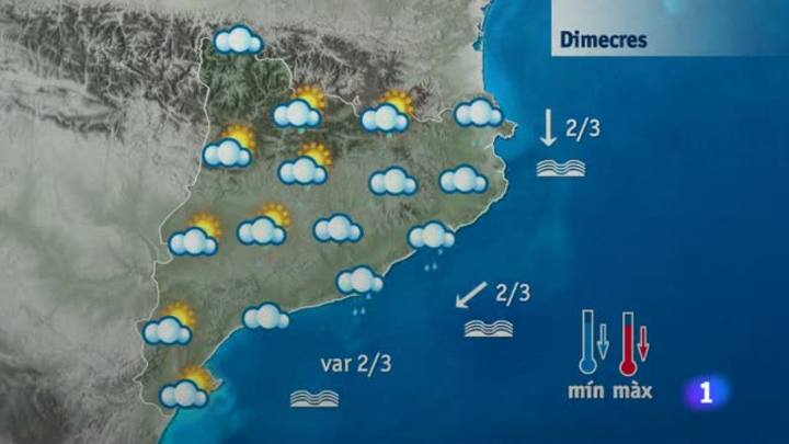 Demà la nuvolositat serà molt abundant al matí, amb precipitacions sobre tot a Girona i Barcelona. La cota de neu baixarà, i s'esperen nevades a la cara nord del Pirineu per damunt dels 900 metres. les temperatures seran clarament més baixes.
