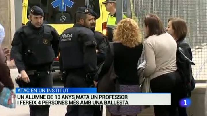 Un professor mort i quatre persones més ferides en l'atac d'un estudiant de 13 anys de segon d'ESO de l'Institut Joan Fuster del districte de Sant Andreu a Barcelona. Els fets han succeït al voltant d'un quart de deu del matí quan l'adolescent ha entrat al centre amb una ballesta casolana i un ganivet. Primer ha atacat amb la ballesta una professora, al sortir s'ha topat amb el mestre, l'ha atacat i ha mort. L'agressor ha quedat sota custodia de la Direcció General de la Infància.