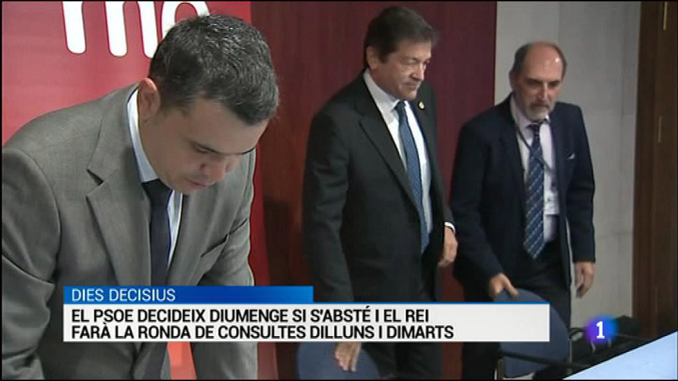 Escoltarem també les últimes reflexions sobre la sentència dels toros del Constitucional. Tot plegat a tres dies de que el rei Felip sisè comenci la ronda de contactes amb els partits per veure si hi ha algun candidat a la investidura. Seran dilluns i dimarts i acabaran amb Rajoy a primera hora de la tarda el que facilitaria que el ple d'investidura comencés dimecres. Tot passarà per la decisió que prengui diumenge el Consell Federal del PSOE.