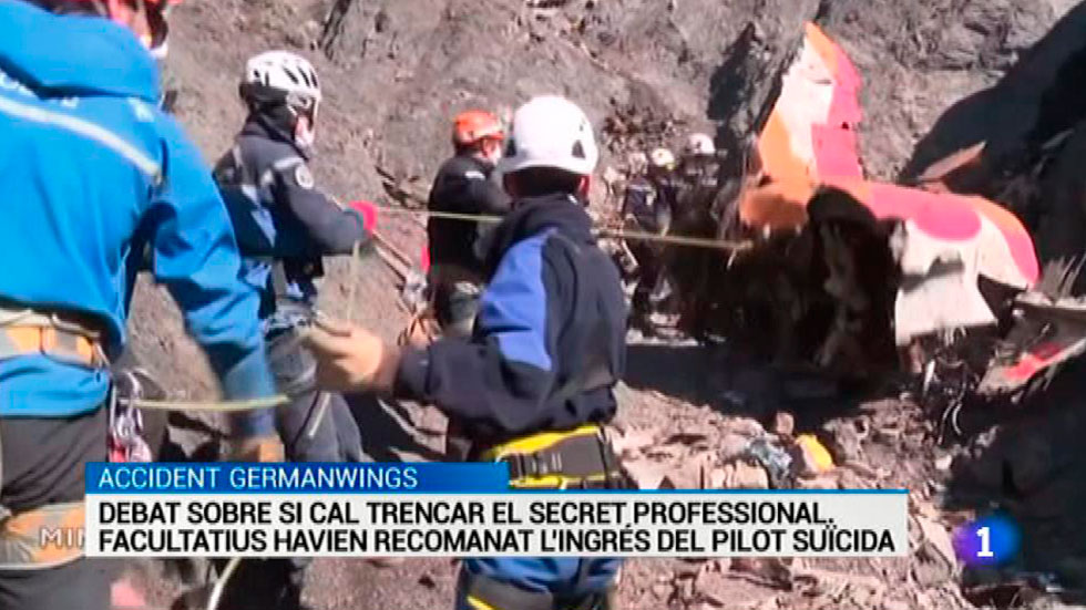 Continua el debat sobre si cal trencar el secret professional en casos com el del sinistre de Germanwings. Psicòlegs i psiquiatres van recomanar l'ingrés del pilot suïcida, sense que la informació arribés a la companyia ni a les autoritats aeronàutiques. Associacions del sector aeri reclamen que es revisi la llei.