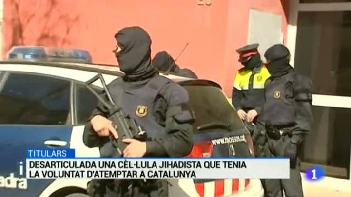 08/04/2015 00:09:59Segons els responsables de la investigació l'actuació policial s'ha precipitat per la intenció dels detinguts de cometre un atemptat a Catalunya. Els arrestats els traslladaran a l'Audiència Nacional que és qui ha ordenat l'operació. Sandra Morales ens ho explica desde Sabadell./ Segons el ministre d'Interior l'operació confirmen que Catalunya és un dels principals focus jihadistes d'Espanya perquè hi viu un terç de la població musulmana. Del centenar de mesquites radicals que hi ha tot l'estat, la meitat són a Catalunya. El ministre ha recordat que aquest any ja s'han detigunt una quarentena de persones a casa nostra. Fernández Díaz, a més, ha acusat algunes entitats vinculades a Convergència de fer proselitisme captant musulmans per a la causa independentista./ Les paraules del ministre han tingut una rèplica immediata per part d'Àngel Colom, que dirigeix la Fundació Nous Catalans. Colom ha ssegurat que les declaracions són absolutament falses i exigeix una rectificació al ministre. I ha assegurat que l'entitat treballa per l'encaix a Catalunya de tota la immigració. La reaccó també ha vingut de part del conseller Espadaler, que considera desfaortunades i for a de lloc les acusacions de Fernández Díaz. També el president Mas ha desqualificat des dels Estats Units la vinculació del jihadisme amb l'independentisme. Sobre el paper de les mesquites en la radicalització d'algunes persones, avui s'ha fet públic el mapa de les religions a Catalunya. L'informe desvincula islam i gihadisme i destaca la bona convivència entre totes les creences. Actualment, el 83 per cent dels més de 8 mil centres de culte que hi ha a Catalunya són catòlics. La resta són 725 esglésies evangèliques, 265 oratoris islàmics, 118 salons del Regne dels Testimonis de Jehovà i 68 centres budistes. Els centres menys acceptats són, per aquest ordre, els jueus, testimonis de Jehovà i islàmics. La Infanta Cristina ha fet arribar avui el seu escrit de defensa previa al judici del cas Noos. En el text els seus dvocats insisteixen en que la germana del rei es va limitar a signar per confiança sense demanar explicacions a al seu marit. Rebutgen així el paper de col·laboradora necessària en el presumpte frau i en demanen l'absolució. Diego Torres, l'exsoci d'Iñaki Urdangarin, assegura en el seu escrit que la Infanta i la Casa Reial van intervenir en la gestació de l'Institut Noós. Una iniciativa que avança al Parlament és una proposta que pretén impulsar un canvi en els hàbits horaris. De moment, hi ha acord entre tots els partits però encara no s'han posat a concretar les reformes legals necessàries. A Salou la primera nit de la segona tanda d'estudiants que han arribat al poble ha deixat les imatges habituals. En aquest cas es tracta de 4.300 universitaris que arriben en plena polèmica per la petició de l'ajuntament de que es deixi d'utilitzar la marca 'Salou', i per les denúncies per la suposada sobreocupació dels hotels que la Generalitat està investigant. Encara falta per arribar una última tanda de 600 estudiants. I a Barcelona, la imatge de grups organitzats de turistes visitant el mercat barceloní de la Boqueria no es veurà els divendres i dissabtes. L'ajuntament ha decidit prohibir l'accés al recinte de grups de més de 15 persones amb un guia. Els comerciants ho consideren una mesura necessària davant l'allau constant de visitants Luis Enrique no vol arriscar-se davant l'Almeria i aquest matí ha convocat a tots els pesos pesants de la plantilla, tret de Busquets sancionat i d'Alba lesionat. L'Almeria ha arribat aquest matí amb Sergi Barjuan preparat per debutar. "Flor de cactus" és el primer senzill del nou disc de Joan Miquel Oliver, l'ex d'Antònia Font. Aquest és el videoclip de la cançó, que es va rodar a l'aeroport d'Alguaire, a Lleida, i que posa color i ritme a la tornada discogràfica del compositor mallorquí.