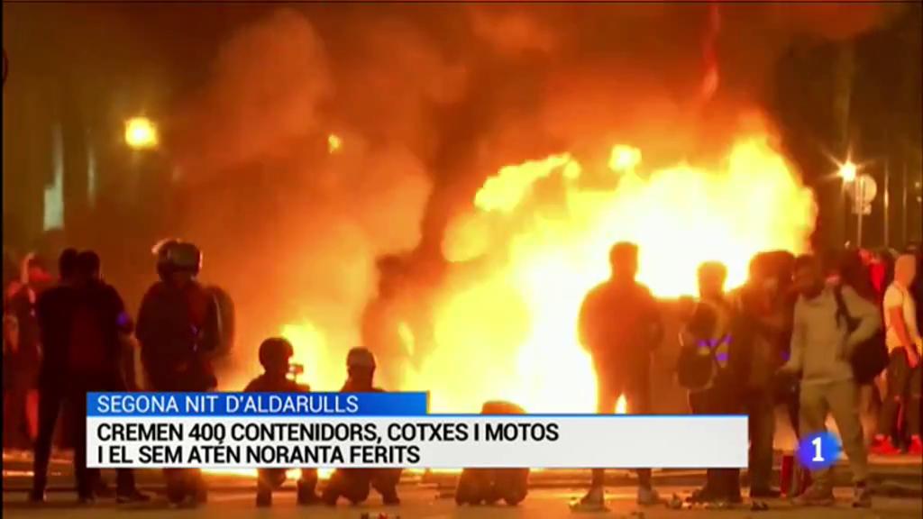 L'actualitat de Catalunya a L'Informatiu en 3 minuts:Segona nit d'aldarulls: Cremen 400 contenidors, cotxes i motos i el SEM atén noranta feritsMés...