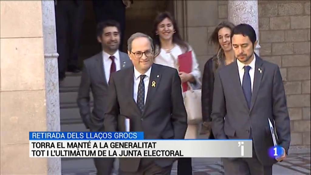 Retirada dels llaços grocs: Torra els manté a la Generalitat tot i l'ultimàtum de la Junta electoral