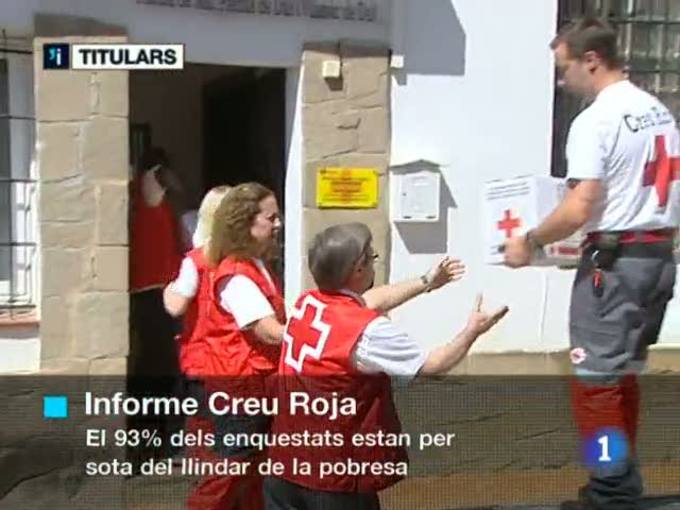 27/07/2011 00:20:52José Luis Rodríguez Zapatero fa una crida a les administracions perquè compleixin els objectius de dèficit. Això hores abans de què estat i comunitats autònomes celebrin una nova trobada del Consell de política fiscal i financera. Catalunya, i 13 comunitats governades pel PP, demanaran una moratòria per tornar els deute que tenen amb l'Estat./El PSOE retalla distàncies respecte al PP per l'efecte Rubalcaba. Segons l'últim baròmetre del CIS ho fa de 3 punts./Un de cada 3 nens atesos per la Creu Roja no menja carn o peix a diari perquè les seves famílies no s'ho poden permetre. El 33% mengen gràcies a les beques escolars.El 18% dels catalans ha comprat algun cop al top manta en el darrer any. Una indústria que mou 500 milions d'euros anuals a Espanya i en la qual, cada dia, hi treballen 2.500 a Catalunya./El Congrès dels Diputats acull l'últim ple del curs polític./El secretari d'immigració de Convergència Democràtica, Àngel Colom, està disposat a tornar els 75mil euros que li va donar Félix Millet l'any./La Creu Roja va atendre, el 2010, un 20% més de persones que al 2009. La majoria necessitaven cobrir necessitats bàsiques com ara menjar... Són dades d'un estudi que han fet amb més de 400 usuaris./Un home ha mort aquest matí a Miami Platja després d'incendiar-se l'apartament on vivia./ sobre el pols entre la Generalitat i Ryanair.... El govern està disposat a negociar, amb la condició que la companyia aèria cumpleixi el que hi ha acordat fins ara i que segons el Govern no està respectant./És l'acte simbòlic amb el qual l'organització del MOBILE WORLD CONGRESS ha nomenat oficialment Barcelona com la capital mundial del mòbil fins al 2018./Més protestes per les retallades a la Sanitat. La UGT ha repartit, aquest matí, flotadors amb el lema "LA SANITAT SALVA VIDES" a la porta de l'hospital del Mar./És el pantà de Sant Llorenç de Montgai, a la Noguera ... Aquest matí els bombers de la Generalitat han fet uns exercicis de salvament aquàtic./El Barça s'enfronta aquesta nit al Bayern de Munic a la final de la Copa Audi. Serà una bona pedra de toc per als blaugrana que, al matí, s'han entrenat a la Ciutat Esportiva del conjunt alemany. Puyol i Xavi han treballat al marge del grup./l'Espanyol, un cop acabada la concentració a Peralada, torna a casa i ho fa per disputar el Trofeu Ciutat de Barcelona davant un clàssic del futbol argentí: Boca Juniors./Als Mundials de natació de Xangai, Phelps ha guanyat el seu primer or dels campionats als 200 papallona. Mireia Belmonte en canvi no podrà lluitar per les medalles demà a la final dels 200 papallona./La selecció espanyola de bàsquet s'ha concentrat, aquest matí, amb 15 jugadors, 7 dels quals, catalans./I aquest és el pavelló on es disputará la competició de bàsket del Jocs Olímpics, a Londres./