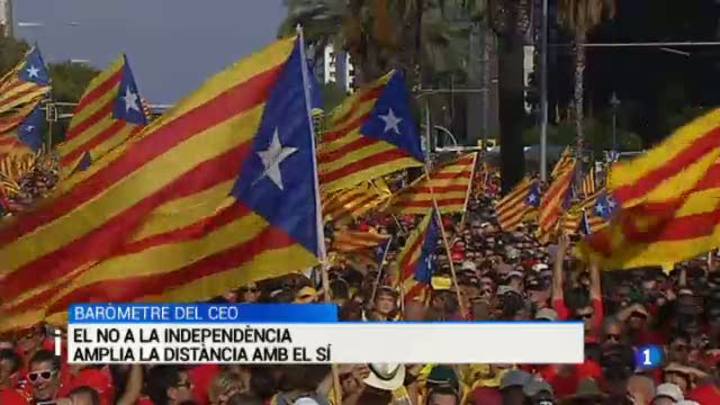 El NO a la independència amplia distància respecte al SÍ, segons l'última enquesta del Centre Estudis d'Opinió de la Generalitat. Els partidaris del NO arriben a un 50%, dos punts més que en l'últim baròmetre, mentre que els qui volen una Catalunya independent baixen del 44 al 42,9. Pel que fa a la intenció directa de vot, l'enquesta reflecteix un empat entre CiU, que es manté, i ERC, que baixa quatre punts. Podem seria la tercera força. L'enquesta es va fer entre el 2 i el 24 de juny, abans de consumar-se la ruptura de Convergència i Unió.