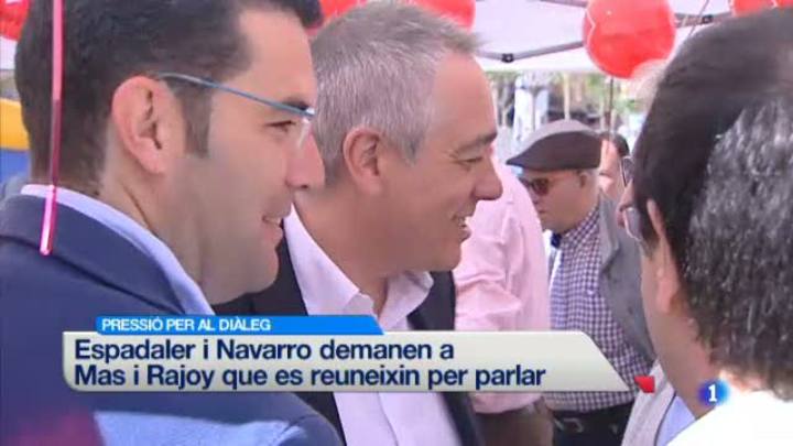 03/05/2014 00:21:25Polítics catalans insisteixen en que Mas i Rajoy s'asseguin a dialogar sobre el procés català. El dirigent d'Unió Democràctica Ramon Espadaler i el primer secretari del PSC Pere Navarro demanen als dos presidents que obrin vies de diàleg. Tot plegat després que el setmanari britànic "The Economist", asseguri en un article que el govern espanyol està fracassant en la gestió del procés català, instant a les dues parts asseure's a parlar.
