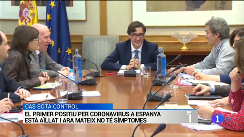 Crida a la calma del ministeri de Sanitat davant el primer cas positiu de coronavirus a Espanya. Cas sota control - asseguren els tècnics - i, ara mateix, sense símptomes. Demanen confiança en els protocols i els seus efectes. El ministre de Sanitat, Salvador Illa, convocarà una reunió extraordinària amb els consellers autonòmics la setmana vinent per informar-los i escoltar, també, les seves propostes.