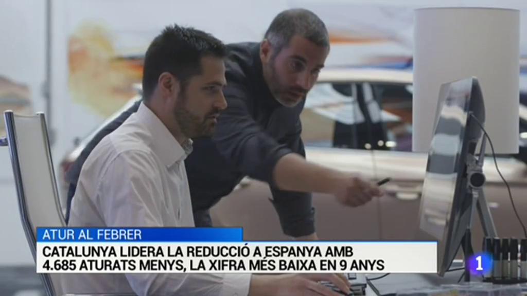 Catalunya lidera la reducció de l'atur registrat al febrer. La caiguda al Servei Català d'Ocupació ha estat de 4.685 persones i deixa el total en 418 mil. Al global d'Espanya la baixada és de 6.280 persones. En total hi ha 3 milions 470 mil aturats registrats, la xifra més baixa en 9 anys.