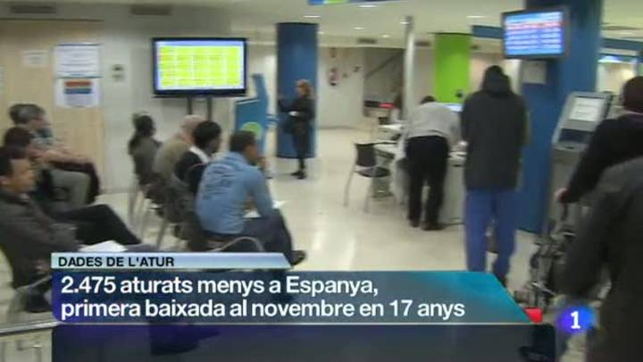 03/12/2013 00:27:49L'atur augmenta a Catalunya el mes de novembre en unes quatre mil cinc-centes persones, però hi ha menys desocupats que fa un any. Al conjunt d' Espanya el nombre d'aturats ha baixat respecte al mes passat, i és la primera vegada en disset anys que cau un mes de novembre. Malgrat que encara hi ha prop de cinc milions de persones sense feina, tant el govern central com la Generalitat veuen en la baixada interanual una tendència esperançadora. / L'economia catalana està ben posicionada però ha de superar alguns obstacles de cara a assolir nous mercats a l'estranger. Ho ha dit el president de Repsol, Antoni Brufau, durant la presentació a Barcelona de l'informe "Espanya emprèn i exporta", fet pel Consell Empresarial per a la Competitivitat./ D'aquest informe hem sabut que les exportacions espanyoles han crescut 7 punts i ja signifiquen el 32% del PIB. Precisament són les exportacions les que han permès a Catalunya sortir de les taxes negatives de creixement. Un fet que s'explica en bona part pel comportaments del sector alimentari català.