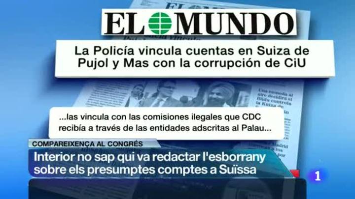 El ministre de l'Interior ha dit avui al Congrés que encara es desconeix qui va elaborar l'esborrany policial publicat per El Mundo que afirmava que Artur Mas i Jordi Pujol tenien comptes a Suissa. La investigació interna considera que el text és un recull d'altres investigacions que NO tindria cap validesa perqué no té el vist-i-plau d'un superior.... Avui també s'han fet públiques les cartes del banc suís Lombard ODIÉR negant que Mas i Pujol hagin tingut qualsevol relació amb aquesta entitat.