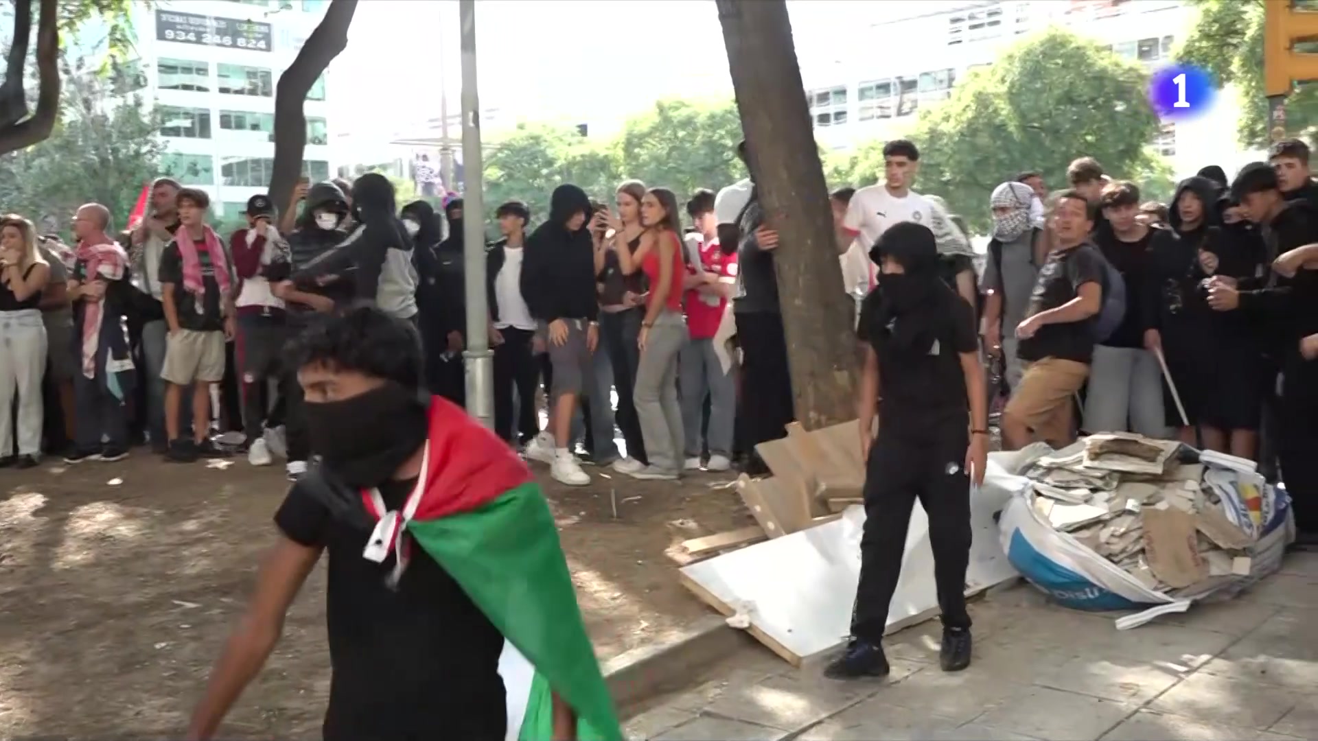 Els Mossos blinden l'estació de Sants per la manifestació per Palestina.