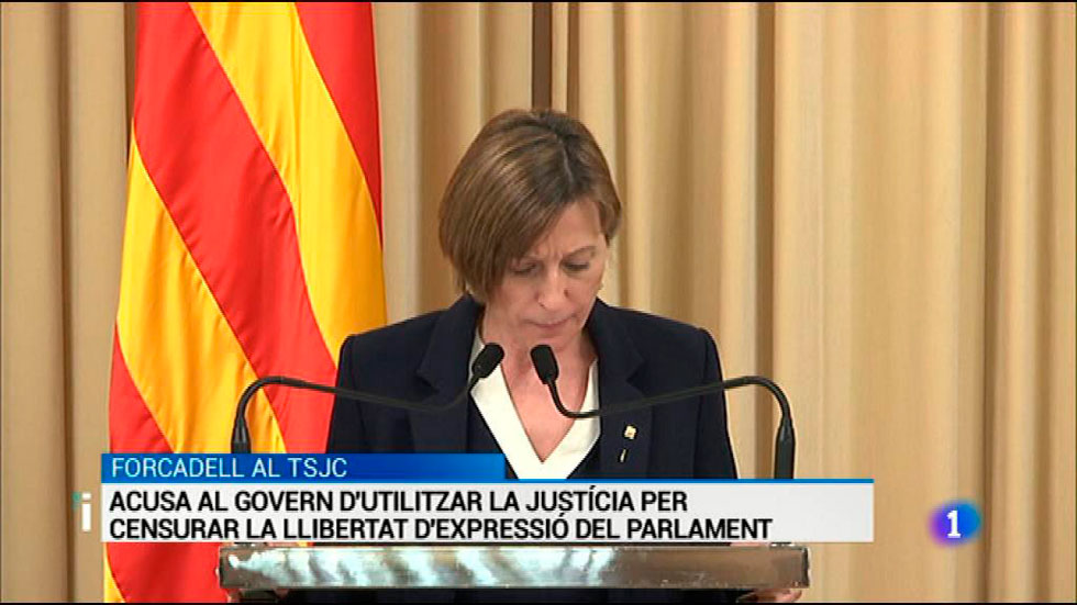 És la denuncia que ha fet Carme Forcadell després de comparèixer al Tribunal Superior de Justícia on ha declarat com a investigada per desobediència...