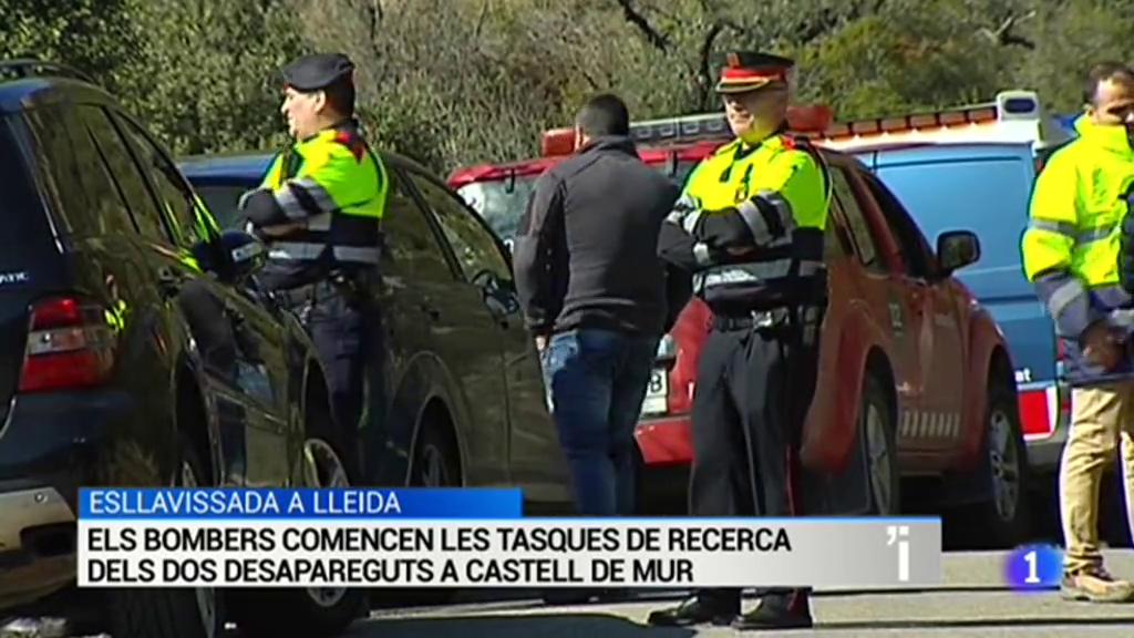 Els bombers han començat a buscar els dos desapareguts per un enorme despreniment de terra a una carretera local a la localitat lleidatana de Castell de Mur. És tracta d'un matrimoni veí de la zona que es creu va ser arrossegat per les roques i la terra mentre circulava per aquesta via. Abans, els geòlegs han garantit que el terreny estava estabilitzada.