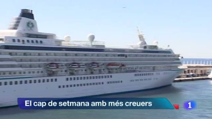 09/08/2013 00:09:54Artur Mas defensa la creació d'una loteria de nadal catalana. A Riba-roja d'Ebre, el president ha dit que tots els diners recaptats es quedaran a Catalunya, i serviran per finalitats socials. Si el sorteig del 31 de desembre té èxit, la Generalitat no descarta crear-ne almenys tres més que se sortejarien el dia de Sant Jordi, el de Sant Joan i el de la diada de l'Onze de Setembre. 15 creuers com aquests atracaran des d'avui i fins diumenge al Port de Barcelona, en el cap de setmana de més activitat del mes d'agost. Aixó suposa l'arribada a la ciutat de 55 mil creueristes, que poden suposar un impacte econòmic de cinc milions d'euros . El primer secretari dels socialistes catalans, Pere Navarro, insisteix en què el seu partit no participarà a la Via Catalana./El líder de Ciutadans, Albert Rivera, ha criticat que Unió Democràtica demani un canvi de nom de l'acte de l'11 de setembreLa Costa Brava rebrà més de 6.000 turistes de creuer aquest agost que arribaran als ports de Palamós i Roses./ Els Mossos d'Esquadra han desarticulat un grup organitzat que robava vehicles de luxe a diferents països de la Unió Europea./ I a Barcelona, la Ronda de Dalt estarà tallada aquest cap de setmana entre el nus de la Trinitat i la plaça de Karl MarxEl 14 d'agost la selecció espanyola disputa un partit amistos a l'Equador quatre dies abans del primer partit de lliga del Barça amb el Llevant./ L'Espanyol jugarà demà l'ultim amistòs abans de l'inici de la lliga./ El fotògraf nordamericà Doug Menuez va ser testimoni, des del 1985 de com treballaven el grup de joves, que van crear els primers ordinadors personals a la vall californiana coneguda com Silicon Valley. Una exposició a Barcelona recull moments del dia a dia d'aquells joves